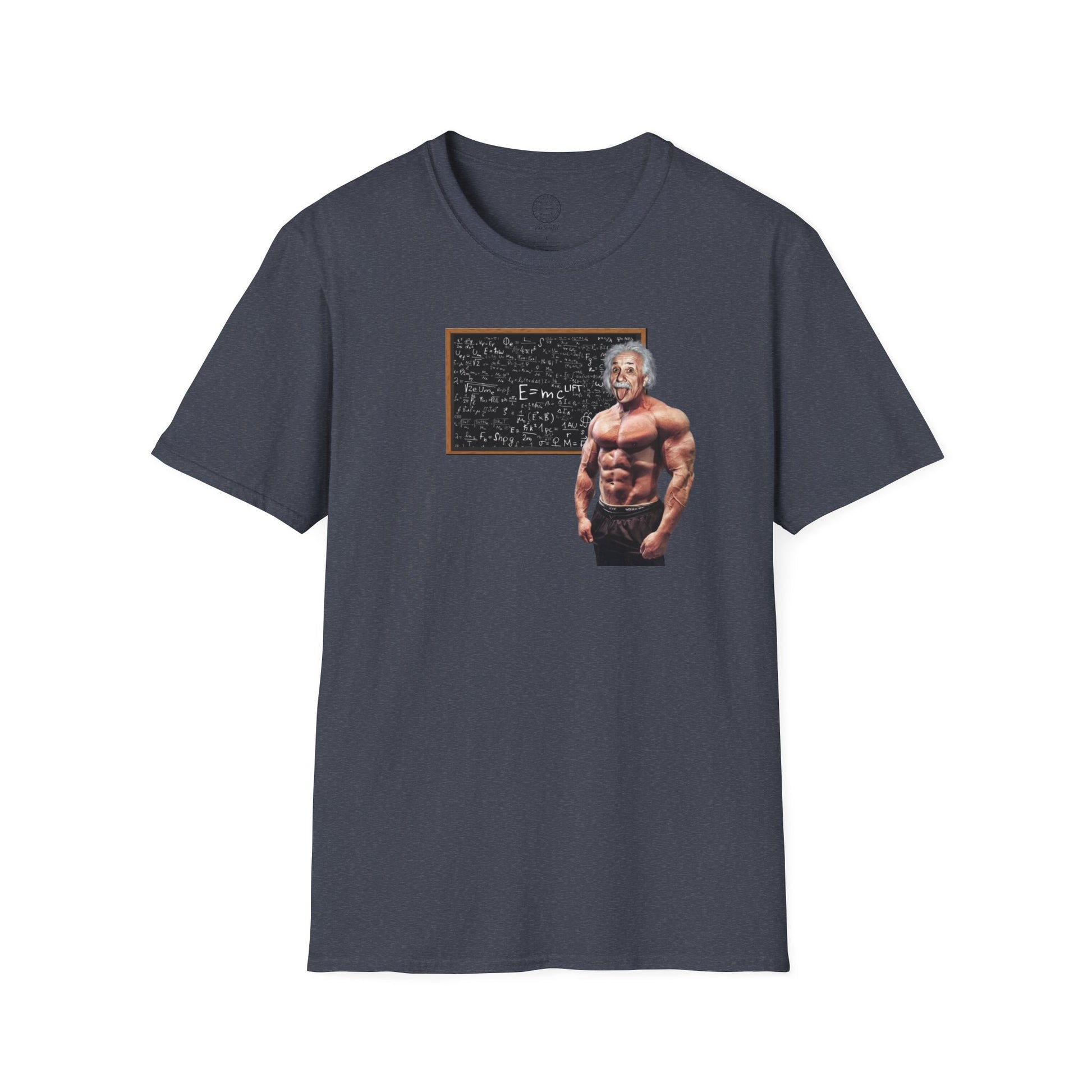 Combine genius-level intellect with serious muscle in the "E=McLift" T-shirt, featuring a jacked version of Albert Einstein. Standing proudly in front of a chalkboard filled with equations, Einstein’s got one formula that really matters: "E=McLift." This shirt is perfect for those who know that both brains and brawn are essential to mastering the universe. Ideal for gym-goers, science buffs, or anyone who loves a clever twist on a classic, this tee is sure to inspire both laughter and admiration. Whether you’re hitting the books or the weights, this shirt lets you flex your intellect and your muscles at the same time.